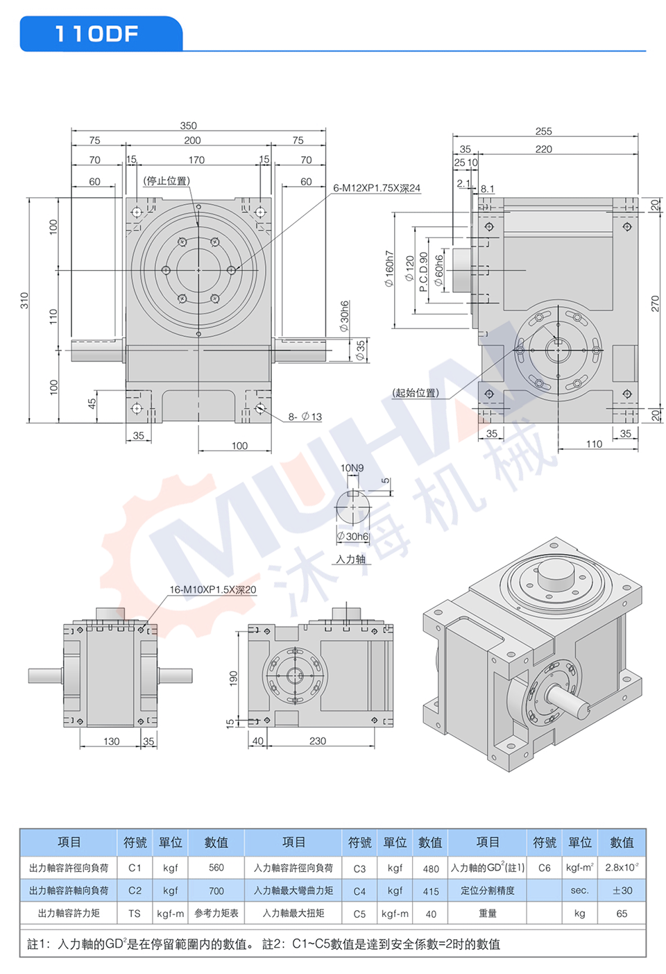 此機種具有重負荷性,可承受較大之垂直徑向或軸向壓力,為本公司專業設計工程師群,經歷多年針對盤式結構需要設計而成,其輸出軸為面盤式設計,有凸緣中心、盤面螺孔、定位、銷孔、固定面寬大、可使平面度及穩固性,更具堅固平穩。能適用于較大負荷之回轉式圓盤驅動場合,此系列機種被廣泛使用在各類盤式加工機械,及類似機種之產業機械、自動化間歇驅動部、驅動圓盤。